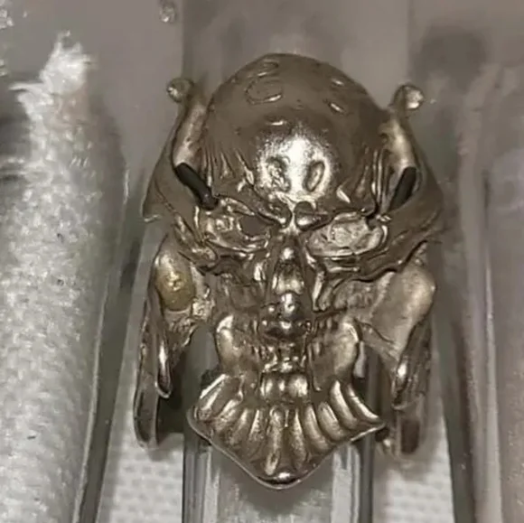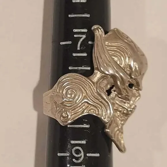 Sterling Silver Horned Warrior Skull Head Unisex Biker Rocker Ring Halloween