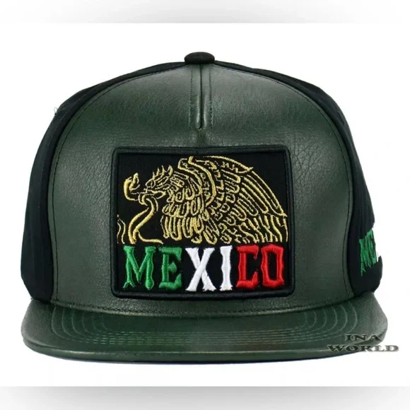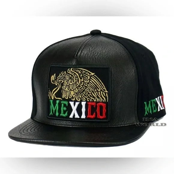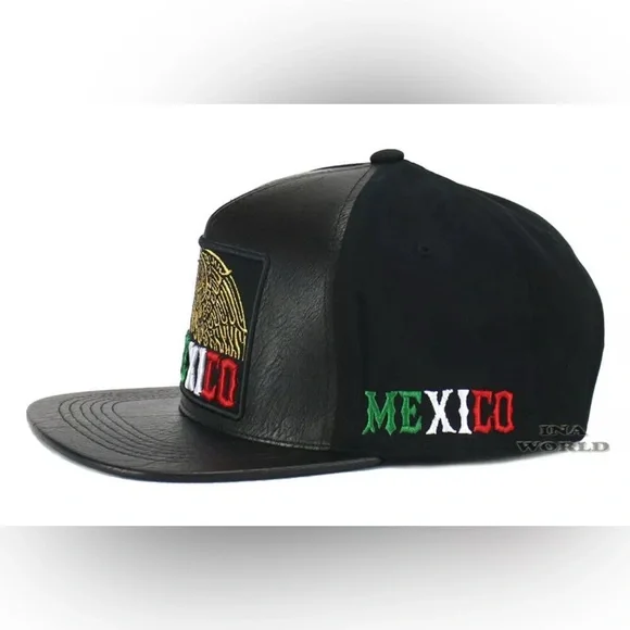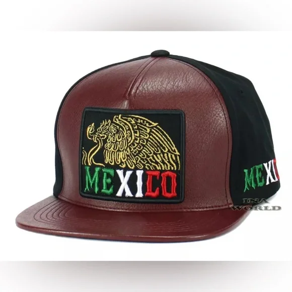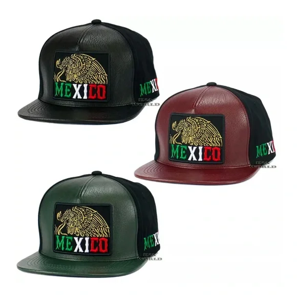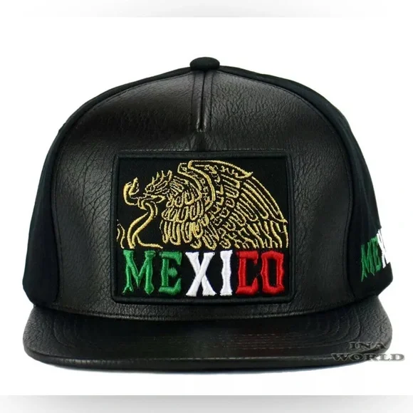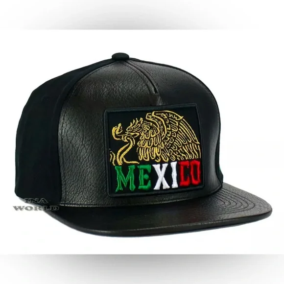 3x MEXICO Hat Faux Leather Golden Eagle Embroidered Snapback Flat Bill Baseball
