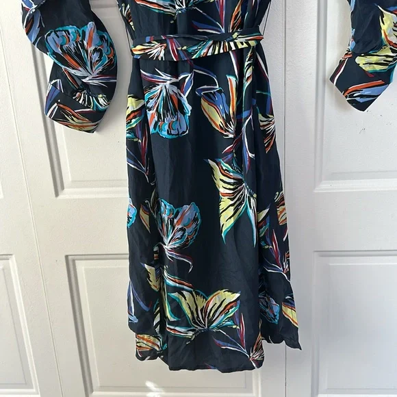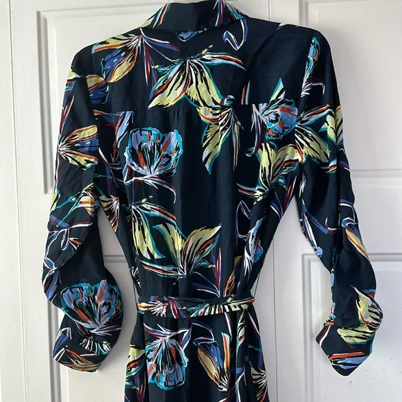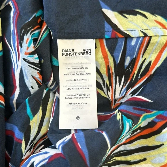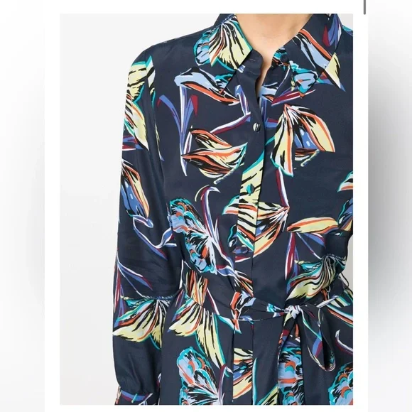 New without tag!Floral-print shirt dress from DVF Diane von Furstenberg featuring navy blue, silk blend, all-over floral print, classic collar, long sleeves and front button fastening.ImportedCompositionViscose 66%, Silk 34%