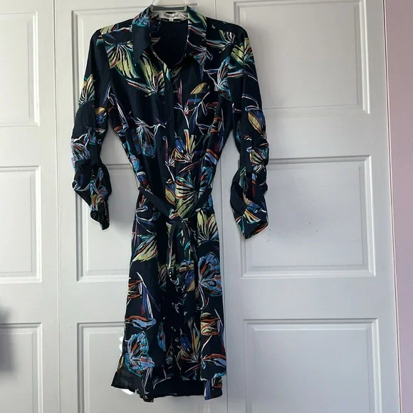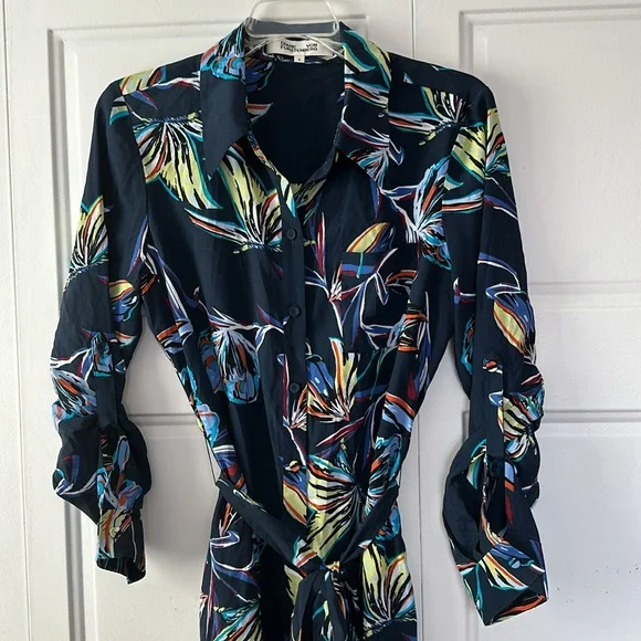 New DVF Diane von Furstenbergfloral-print shirt dress