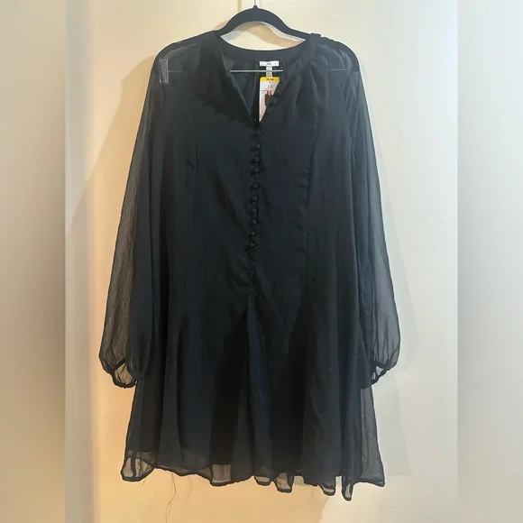 This chic black sundress by Joie is perfect for a cocktail night out, featuring a flattering V-neckline and elegant bishop sleeves. The lightweight fabric offers a graceful flow,...