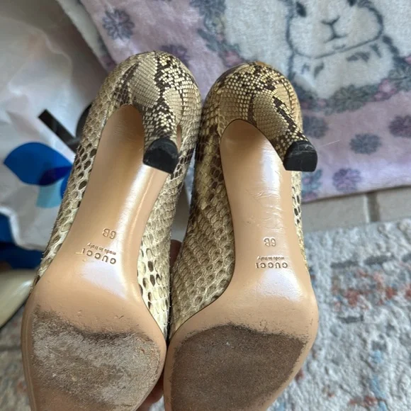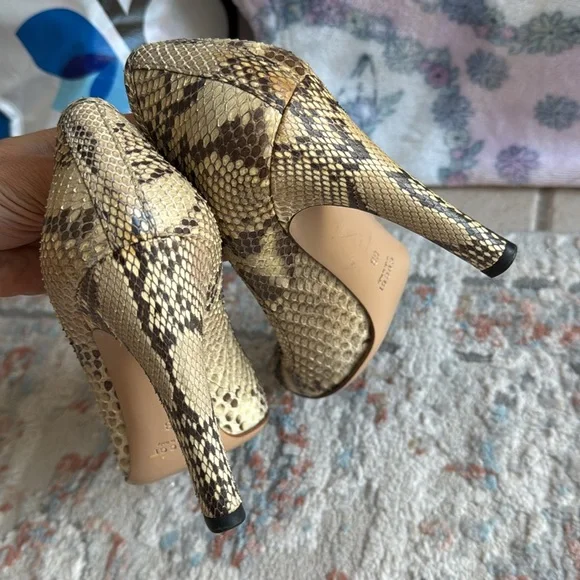 Beautiful. Snakeskin Pumps. Hell 4.25◦Neutrals◦Interlocking G Logo◦Square-Toes◦Stiletto Heels