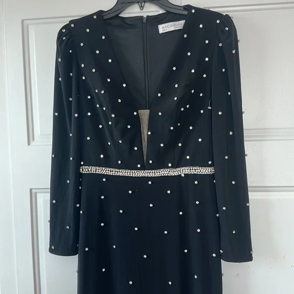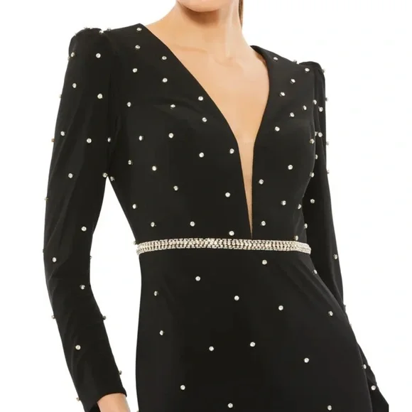 MAC DUGGAL Crystal Detail Long Sleeve Column Gown