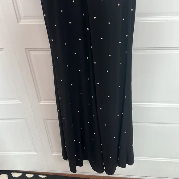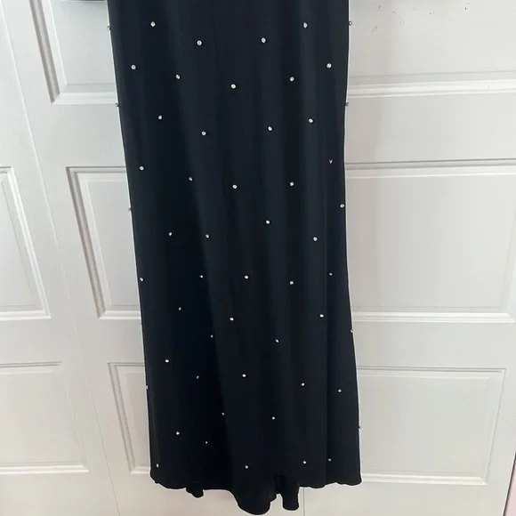 New without tag!Serve drama for cocktail hour and beyond in this column gown, sprinkled with sparkles and deeply dipped at the neckline.65" lengthPlunge neck with modesty...