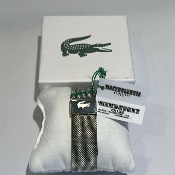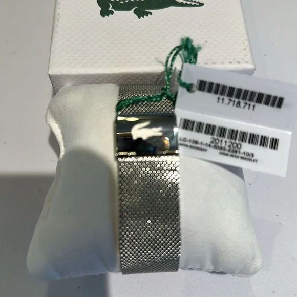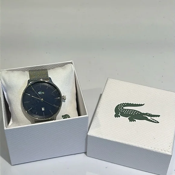 Gorgeous Lacoste watch with a blue dial and silver mesh band. Perfect for any occasion.