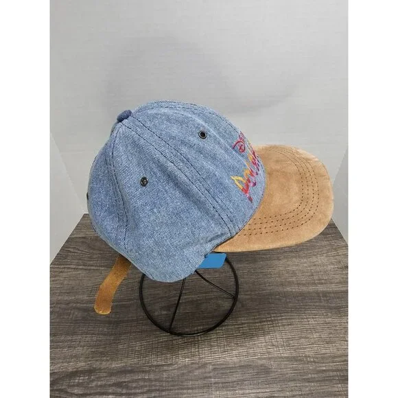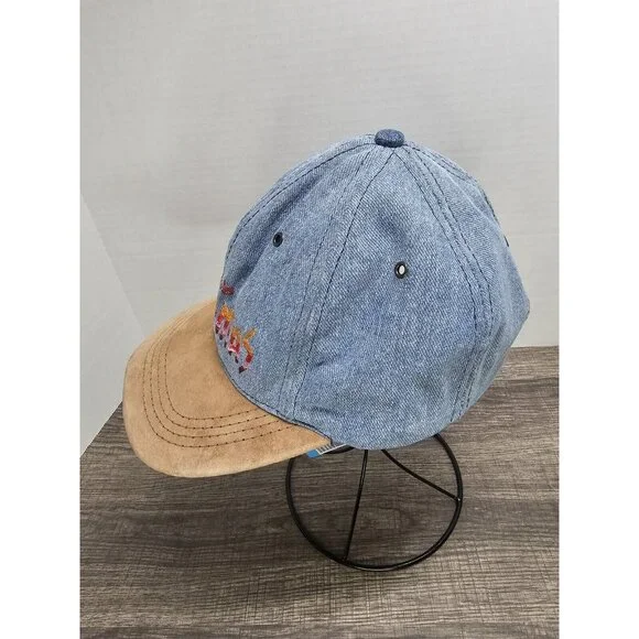 Vintage Rare Disney’s Pocahontas Suede Denim Baseball Cap Hat Leather Strap Back