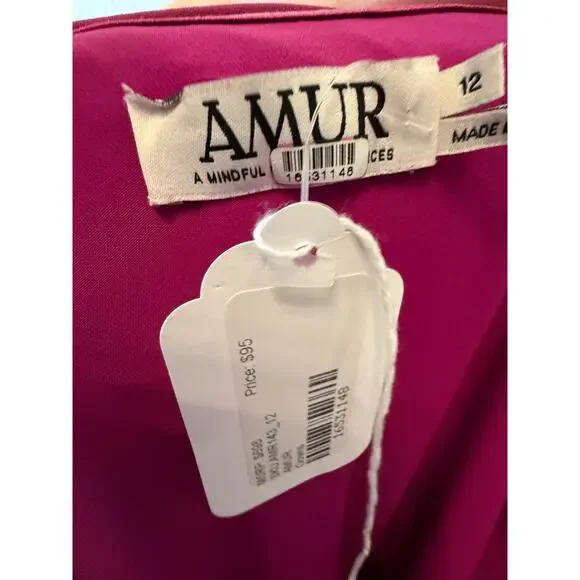 NWT AMUR Atlas One Shoulder Ruched FloralGown Dress Deep Purple Women´s Size 12New With TagsThis AMUR Atlas gown is a brand-new, tag-intact maxi dress in a striking deep purple floral print. Perfect for upscale affairs—such as weddings, formal dinners, or gala events—this gown balances modern sophistication with sustainable, luxe appeal.A-line silhouetteLong lengthSide ruched detailingSleevelessOne-shoulderSide zipper closure100% Recycled PolyesterDey cleanImportedwedding guest, bridesmaid, wedding, gown, cocktail, formal party, new, designer, girly, feminine, classy, classic, formal cocktail party, chic, flirty, formal events, galas, maid of honor