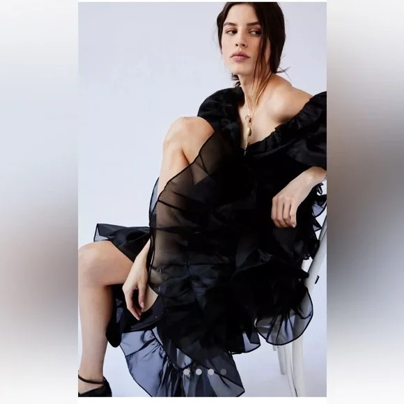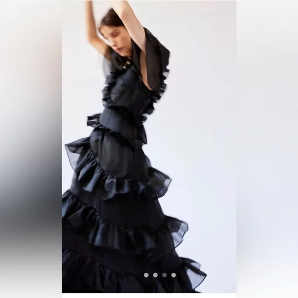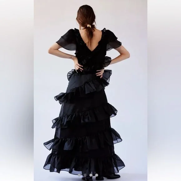 Free People Selkie The Elfin Maxi Dress Ruffle Organza Black CaviarNew With Tags *Size:XSretail price:$315.00100% cotton32" around bust 38" around waist53" long in middle
