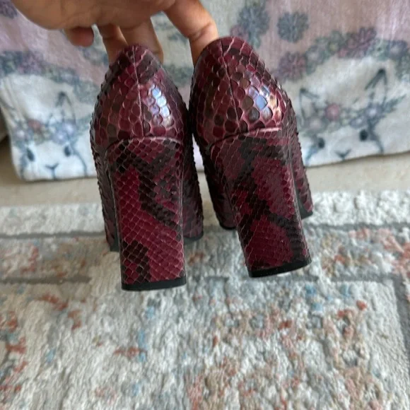 Vintage Pumps◦Pink Python. Block Heels. Heels. 3.5◦Animal Print◦Square-Toes◦