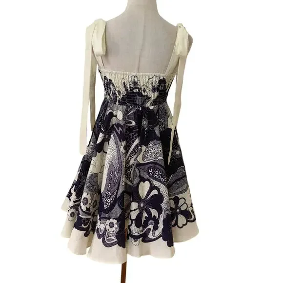 Alemais Mickey Mini SundressSize US 8 = AU 12Listed in US sizing New without hang tag, pristine conditionFeatures a mini-length and A-line silhouette. Slubbed weave is mid-weight and offers no stretch.Fabric: Mid-weight, non-stretch linen weavveSmocked elastic back panelFloral printMini lengthSquare necklineAdjustable shoulder strapsHook-and-eye and hidden zip at sideOn-seam side pocketsShell: 100% linenUnlinedDry cleanImported, China