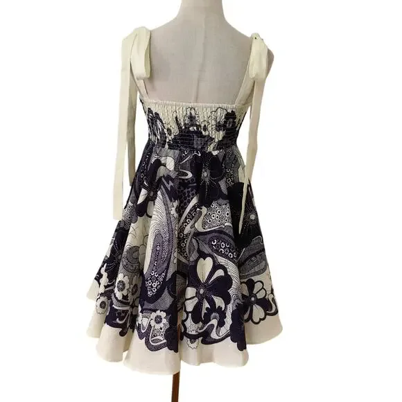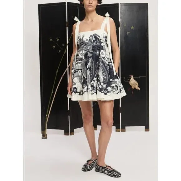 Alemais Mickey Mini SundressSize US 2 = AU 6 Listed in US sizing New without hang tag, pristine conditionFeatures a mini-length and A-line silhouette. Slubbed weave is mid-weight and offers no stretch.Fabric: Mid-weight, non-stretch linen weavveSmocked elastic back panelFloral printMini lengthSquare necklineAdjustable shoulder strapsHook-and-eye and hidden zip at sideOn-seam side pocketsShell: 100% linenUnlinedDry cleanImported, China