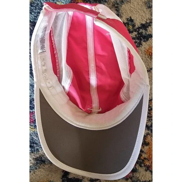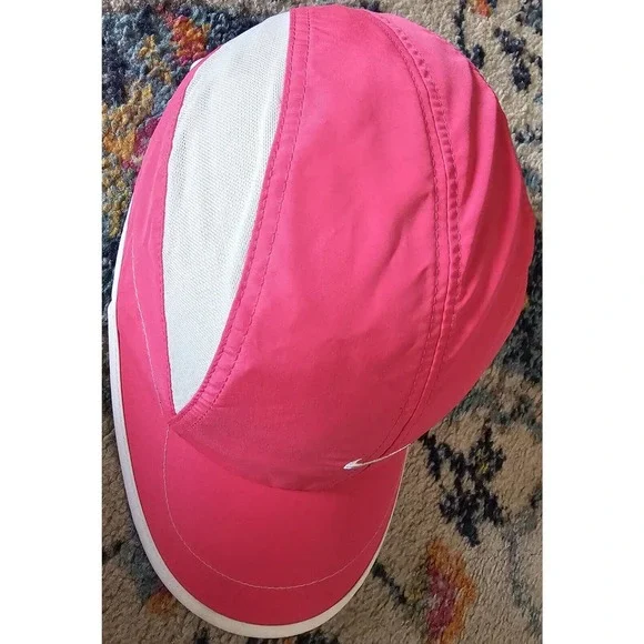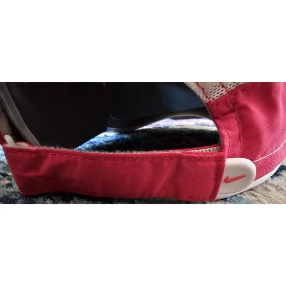 Nike Golf Panel Hat Adjustable Hook & Loop Pink White Mesh Nike Swoosh Logo RARE