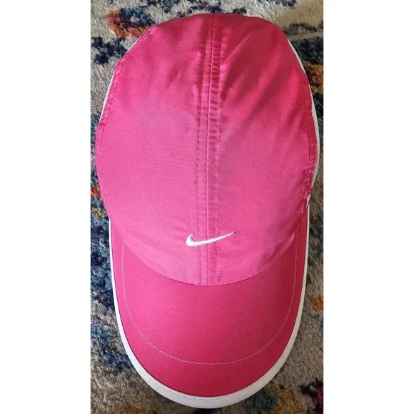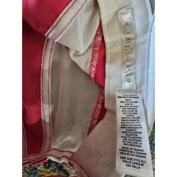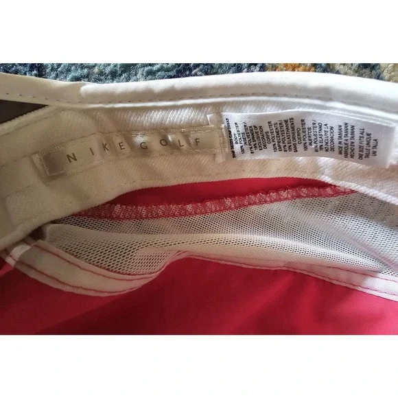 Get ready to hit the golf course in style with this Nike Golf Panel Hat. The adjustable hook and loop design ensures a comfortable fit for any head size, while the vibrant pink and white mesh fabric adds a pop of color to your outfit. The Nike Swoosh logo on the front gives it a classic touch.Handmade with a blend of polyester, spandex, and cotton, this lightweight and breathable hat is perfect for all occasions, whether it´s a casual day out or a sports event. Featuring moisture-wicking and quick-dry technology, this hat is suitable for summer, fall, and spring seasons. With its hipster, designer, and beach-themed pattern, this hat is a must-have for any fashion-forward individual.