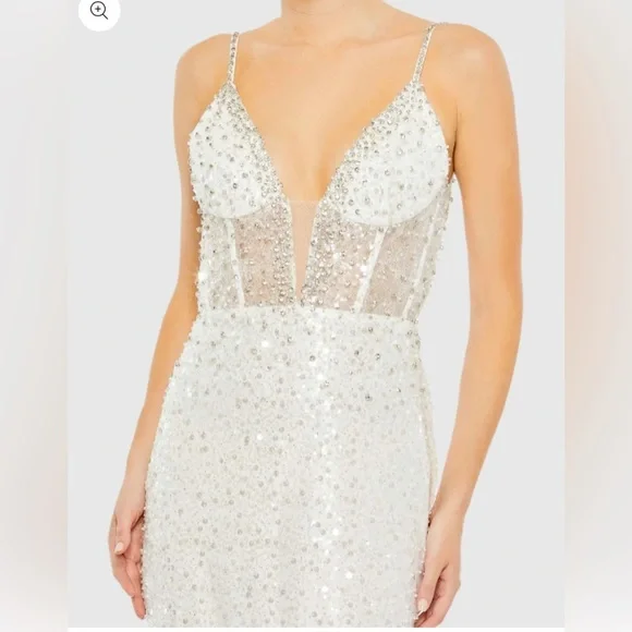 NWTMac Duggal 68175 White Embellished Neck Sleeveless Trumpet Gown Size 8
