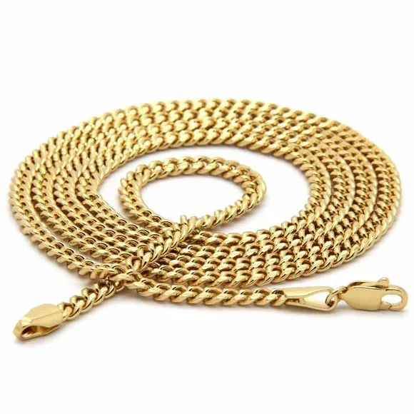 - 3mm width and 30” length- Not real Gold- High quality will not tarnish! Long lasting!- Comes with chain + pendant- Unisex