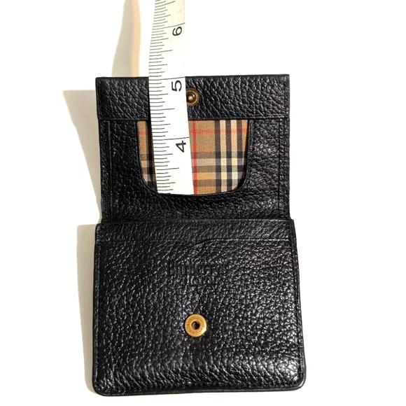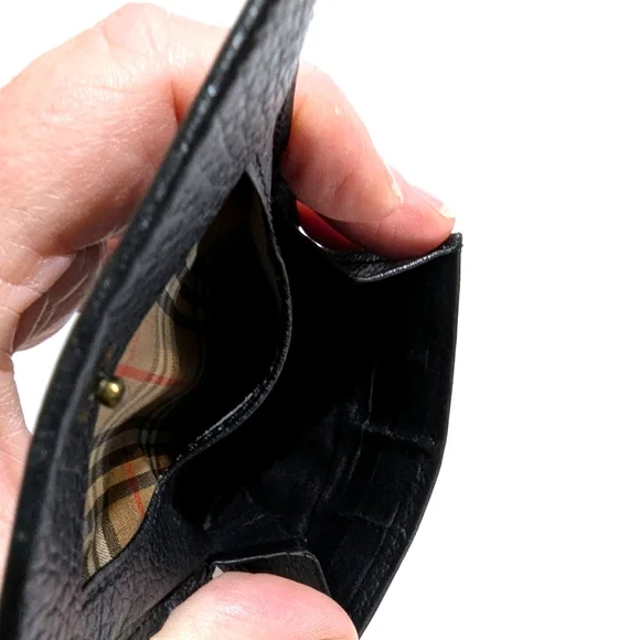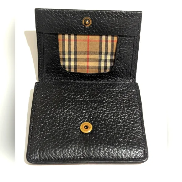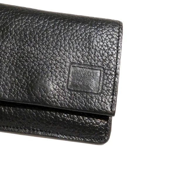 This elegant Burberry accessory is crafted from premium black leather with a textured, pebbled finish. Its compact design is perfect for organizing your money and cards, making it an essential addition to your daily essentials.