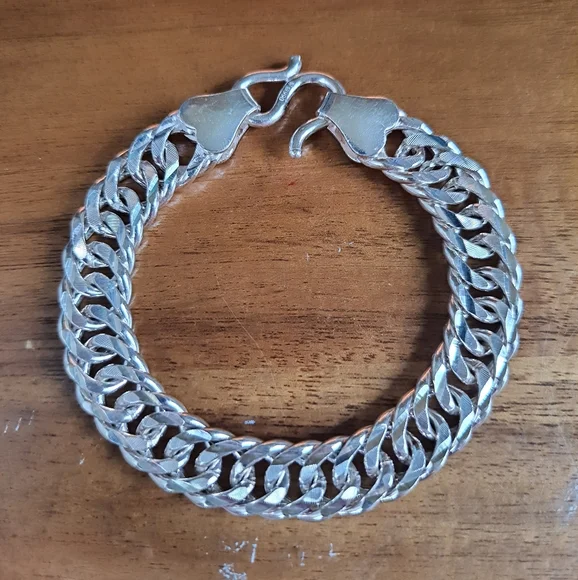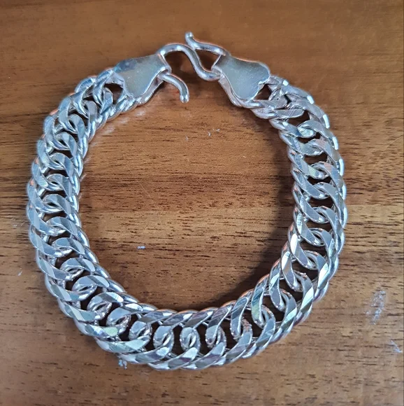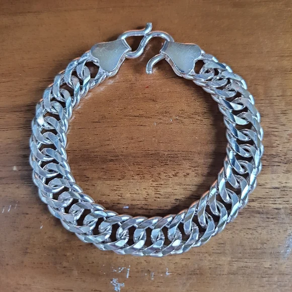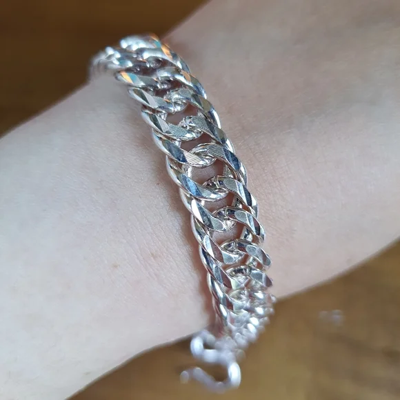 *Stylish chunky silver chain bracelet. Perfect for any occasion.*This chain bracelet is stamped with "足銀990" which means *sterling silver 990" (Solid 99% Sterling Silver)*The length of the bracelet is around 7.9 inches and the width is around 1.1CM.*The weight of the bracelet is around 39 gram.
