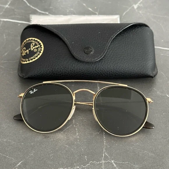 Experience timeless elegance with Ray-Ban´s aviator sunglasses, featuring a sleek black and gold frame. These sunglasses offer a sophisticated look, perfect for any occasion. Complete with a protective black leather case, they ensure both style and durability.Next day shipping
