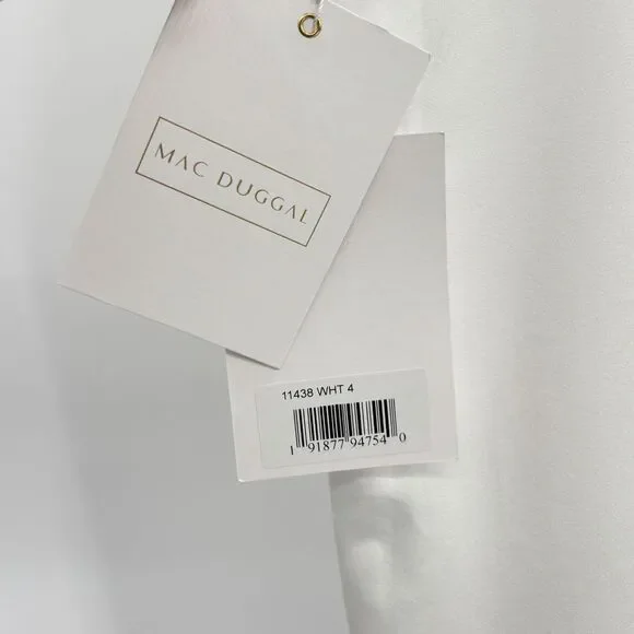Mac Duggal White Feather Cap Sleeve Pearl Embellished Tea-length Dress $598 Sz 4