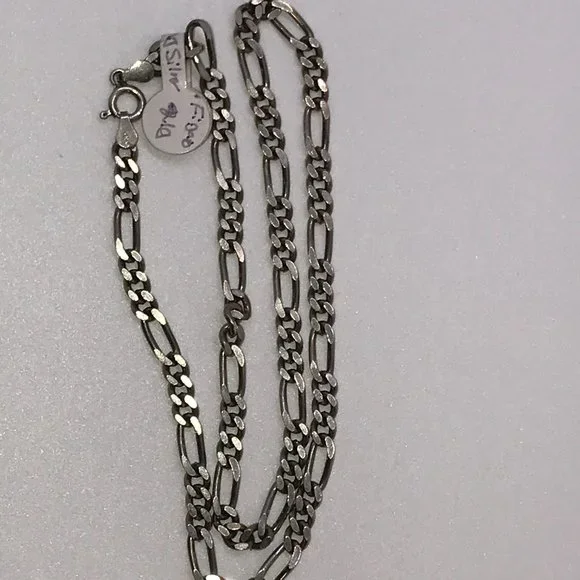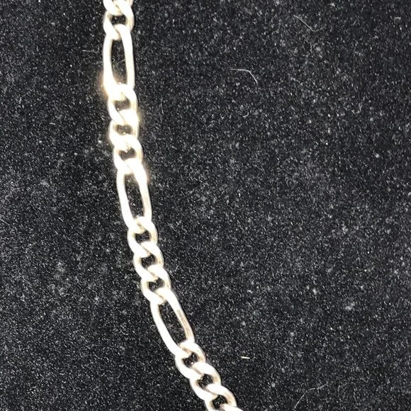 This is an 18" long 5 mm wide 22 grams worth of sterling silver fashioned into a beautiful Figaro chain. This necklace is Italian Silver.#figaro #sterlingsilver #18inchnecklace #necklace #silvernecklace