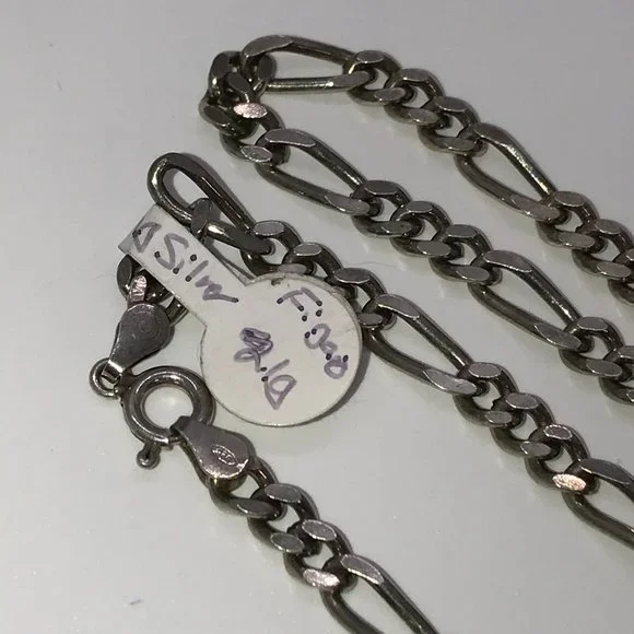 This is an 18" long 5 mm wide 22 grams worth of sterling silver fashioned into a beautiful Figaro chain. This necklace is Italian Silver.#figaro #sterlingsilver #18inchnecklace...