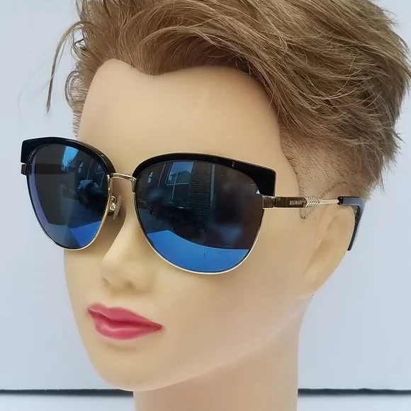 Authentic BALMAIN ParisTrendy Half Rim oversized mirrored Sunglasses Unisex.Good pre-owned condition.Has some scratches and scuffs on lenses Gold tone FrameMade in France Will come in non brand hardcase $ 107