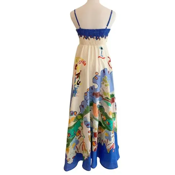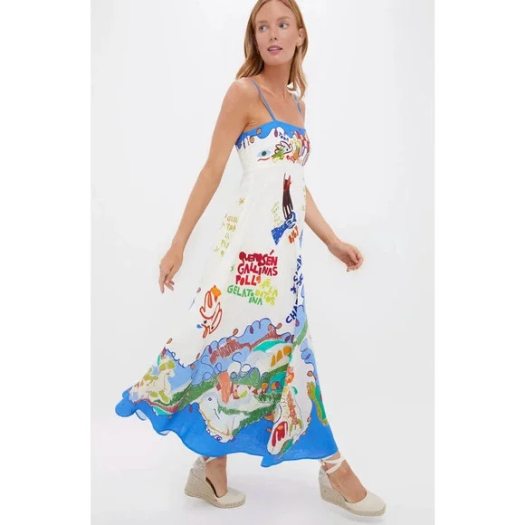 Alemais Nadia Sundress New without hang tags, pristine condition Size US 6 = AU 10Listed in US sizing Artwork in collaboration with Nadia HernandezMidi sundress silhouetteSquare neckAdjustable strapsShirred panel at back bodiceInvisible zip at sideInseam pocketsComposition: 100% European Flax Linen