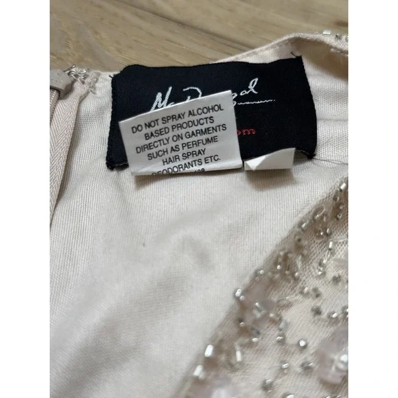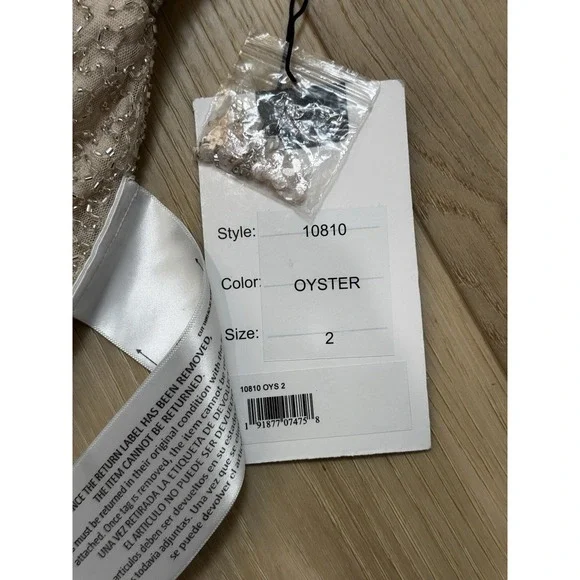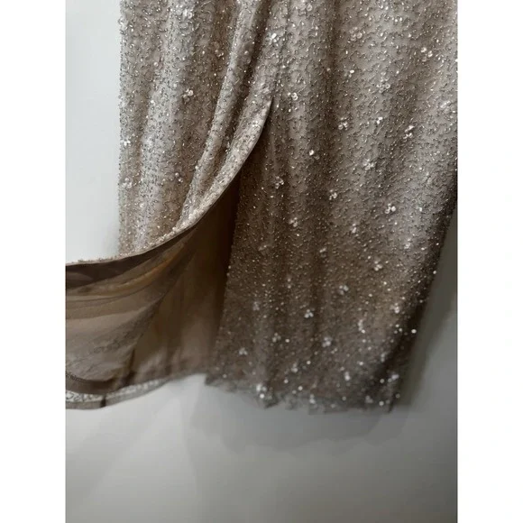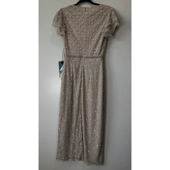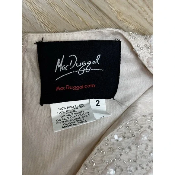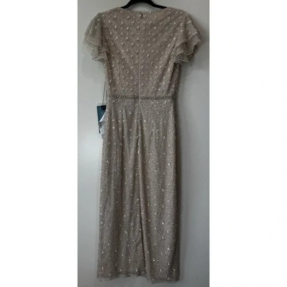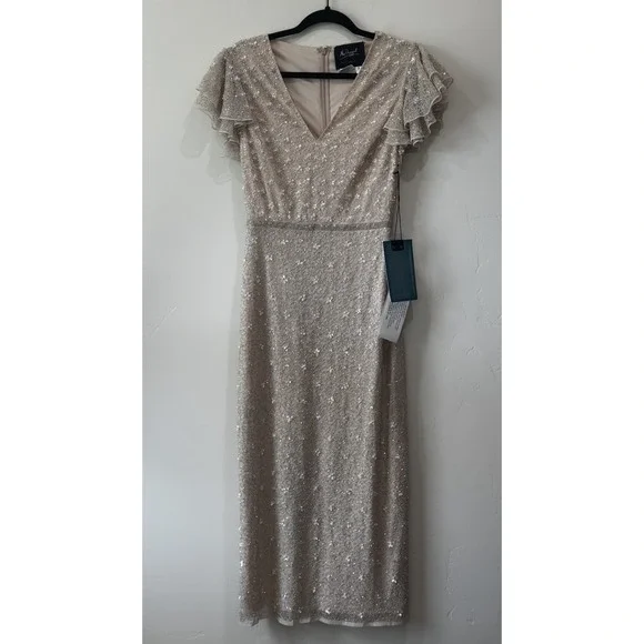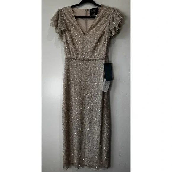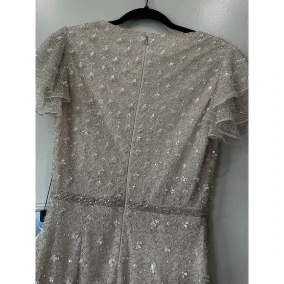 MAC DUGGAL BEAD 10810 RUFFLE SLEEVE MIDI COCKTAIL OYSTER SHEATH DRESS sz 2