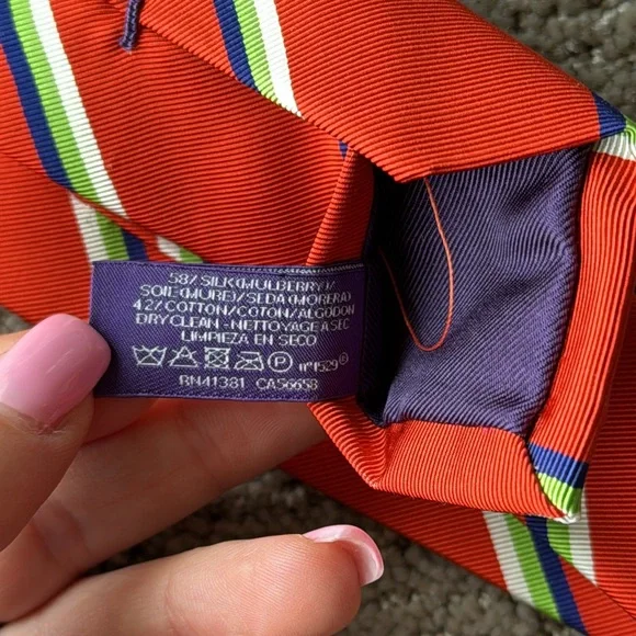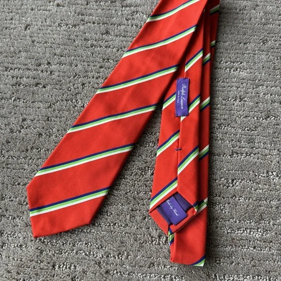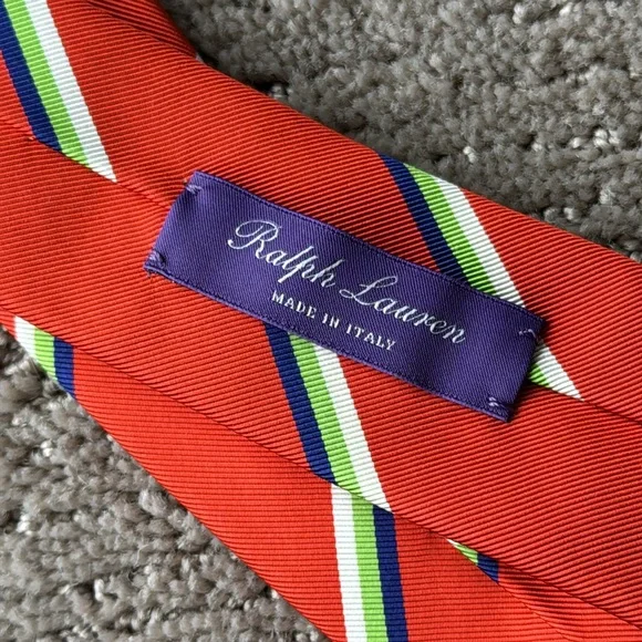 This elegant Ralph Lauren tie features a striking red and green color palette, perfect for adding a touch of sophistication to any outfit. Crafted from luxurious silk, it offers a subtle sheen that enhances its formal appeal. Ideal for special occasions, this tie is a timeless accessory that complements a variety of styles.
