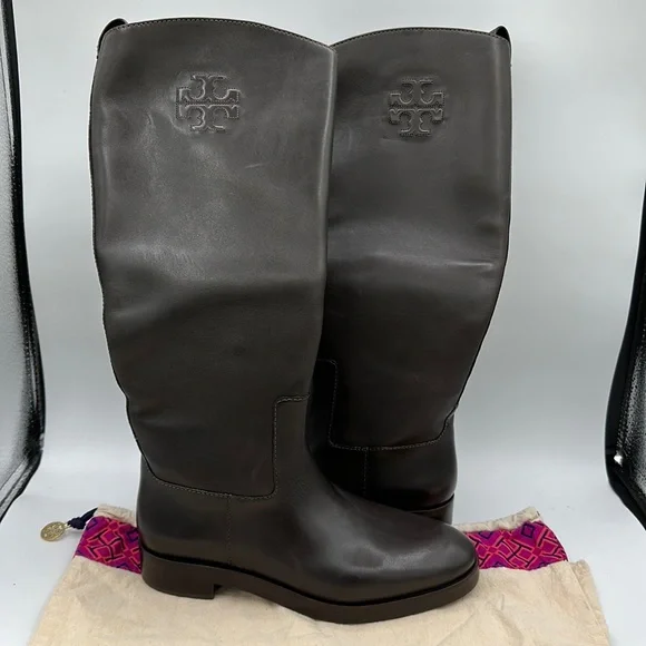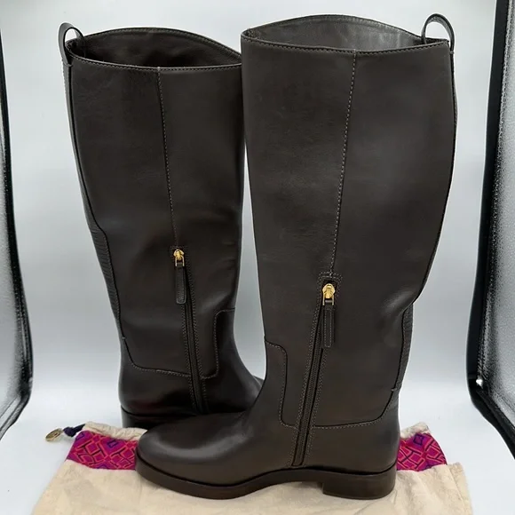 Tory Burch The Riding Boot Chocolate Brown Leather Knee High Boots Size 7.5 NWOB