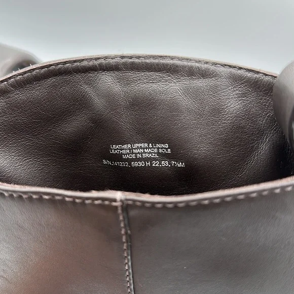 The return of a classic. Crafted from rich leather, The Riding Boot combines equestrian style with city sophistication. It has an interior zipper, durable sole, and an embossed Double T. A polished partner to trousers and dresses.1.50" (38mm) heelShaft height: 41.2cm; calf circumference: 39cmCalf leather upperNapa leather liningBuffed leather and rubber soleZipper closureDust bag includedMade in BrazilBrand new without boxBeautiful chocolate brown / dark brown color