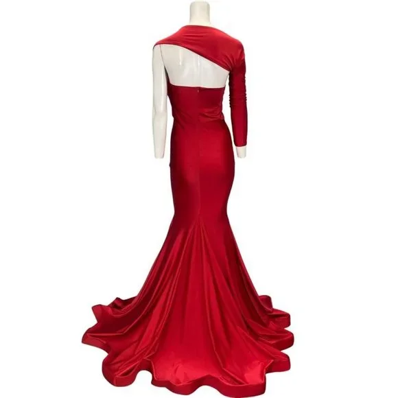 Issue New York One Shoulder Long Sleeve Mermaid Gown Red Size Small NWT