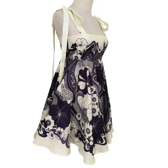 Alemais Mickey Mini SundressSize US 6 = AU 10Listed in US sizing New without hang tag, pristine conditionFeatures a mini-length and A-line silhouette. Slubbed weave is mid-weight and offers no stretch.Fabric: Mid-weight, non-stretch linen weavveSmocked elastic back panelFloral printMini lengthSquare necklineAdjustable shoulder strapsHook-and-eye and hidden zip at sideOn-seam side pocketsShell: 100% linenUnlinedDry cleanImported, China