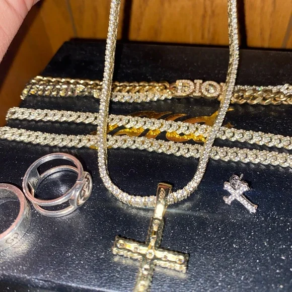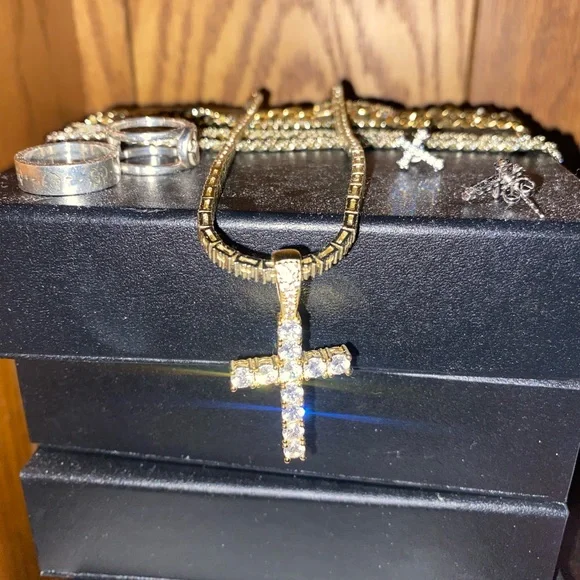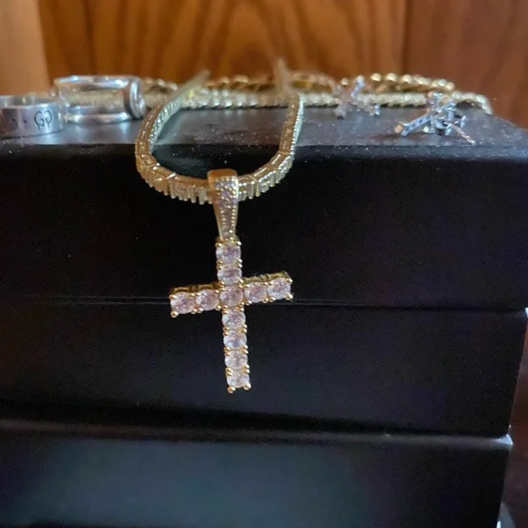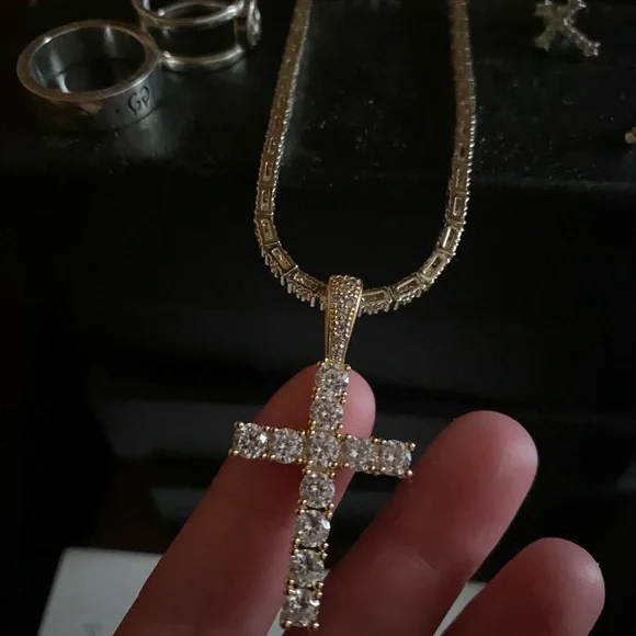 Diamond cross necklace with diamond tennis chain