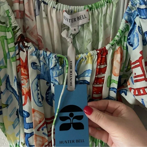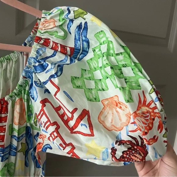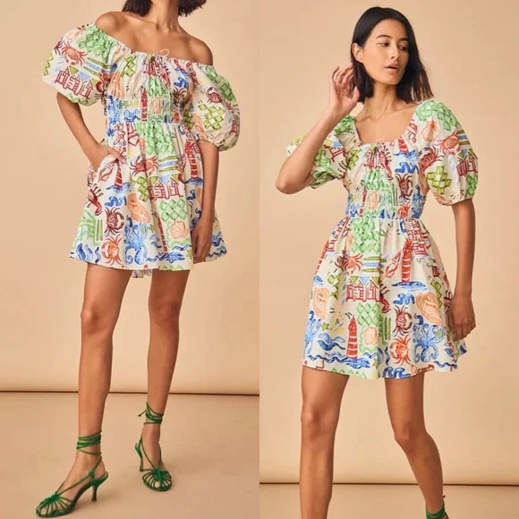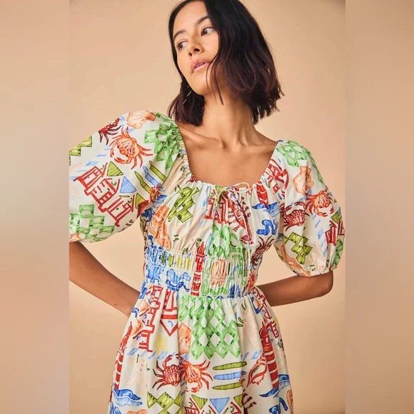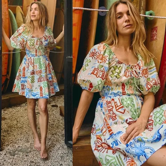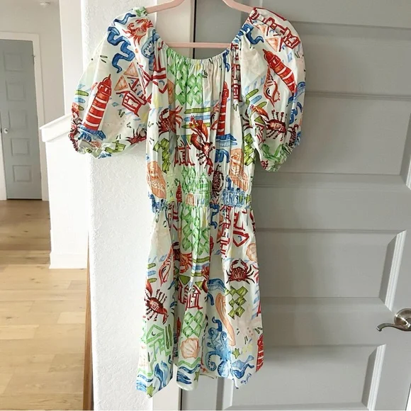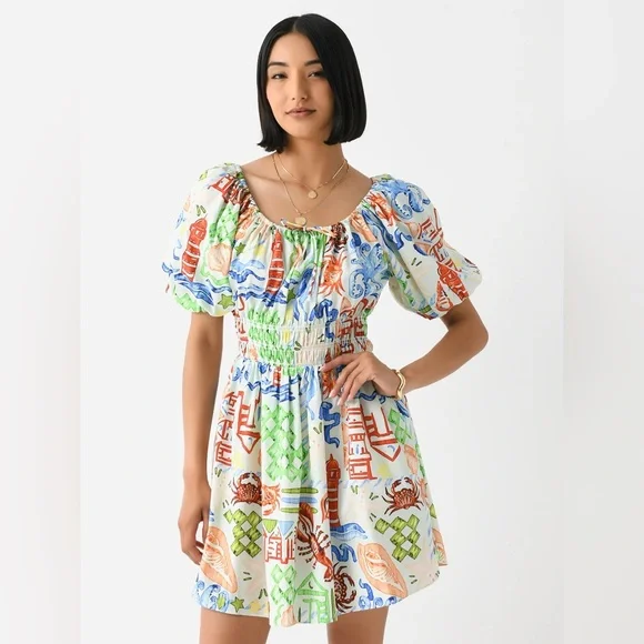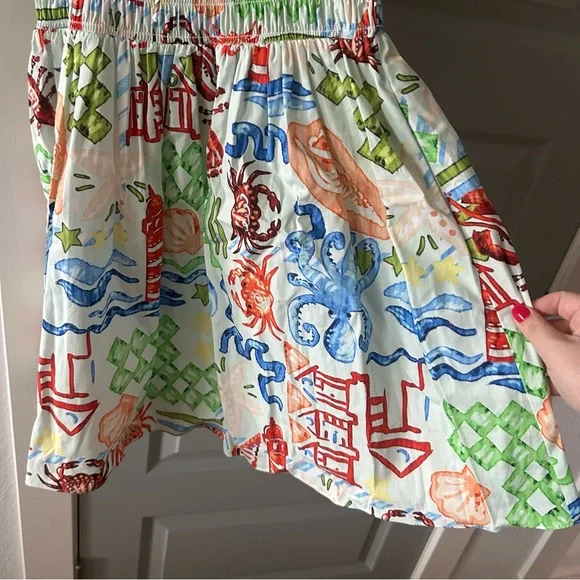 NWT Hunter Bell Drew Mini Dress Crab Tropical Coastal Beach Shell Print Cotton