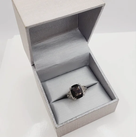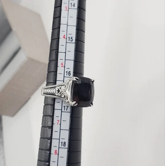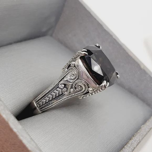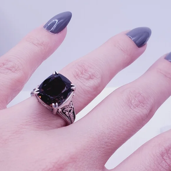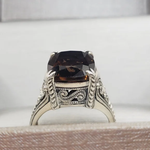 Make a bold statement with this captivating smoky quartz ring, featuring a large, cushion-cut gemstone set in solid 925 sterling silver. The rich, earthy tones of the smoky quartz are perfectly complemented by the intricate vintage detailing along the band, creating an elegant blend of classic and contemporary design. vintage condition.Main Stone: Smoky Quartz (faceted cushion cut)Metal: Solid 925 Sterling SilverFinish: High polish with oxidized detailingDesign: Ornate scrollwork - chevron accents on the bandWhether you´re dressing up for an evening event or adding character to everyday wear, this ring is a stunning accessory that speaks of timeless sophistication.Questions? Leave a comment below!Also check out our closet for some of the most stunning rings onand don´t forget to like your favorite listings for a discount! Fast Shipping! Bundle & Save! Happy Poshing!Our other listings feature: 9k 10k 12k 14k 18k 925 sterling silver ring rose white yellow gold smoky quartz jade chocolate black opal morganite blue pink birthstone engagement anniversary promise rings band moissanite lab Diamond Ruby Sapphire Emerald Amethyst Citrine Garnet Peridot Topaz Aquamarine Tourmaline Zircon Spinel Iolite Moonstone Tanzanite Chrysoprase Andalusite Labradorite Fluorite Amber Coral Pearl Jet Turquoise Lapis Lazuli Malachite Onyx Jasper Agate Obsidian Rhodonite Rhodochrosite Serpentine Chrysocolla Hematite Tiger’s Eye Alexandrite Kyanite Dioptase Sphene Apatite