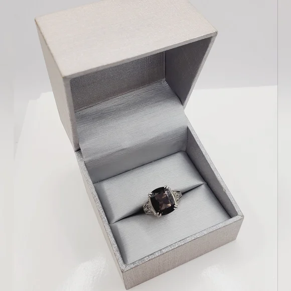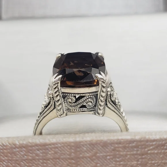 This stunning ring in vintage condition features a captivating blend of silver and brown hues, meticulously crafted to highlight its intricate design. Genuine smoky quartz center...