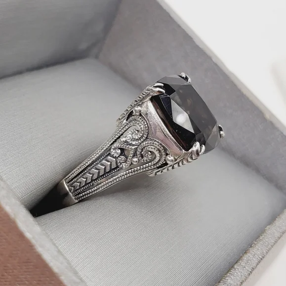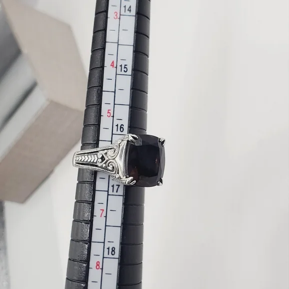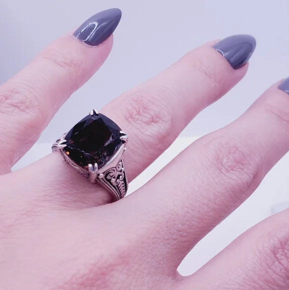 This stunning ring in vintage condition features a captivating blend of silver and brown hues, meticulously crafted to highlight its intricate design. Genuine smoky quartz center stone. Its unique artistry and elegant appeal make it a perfect accessory for any occasion, adding a touch of sophistication to your look.