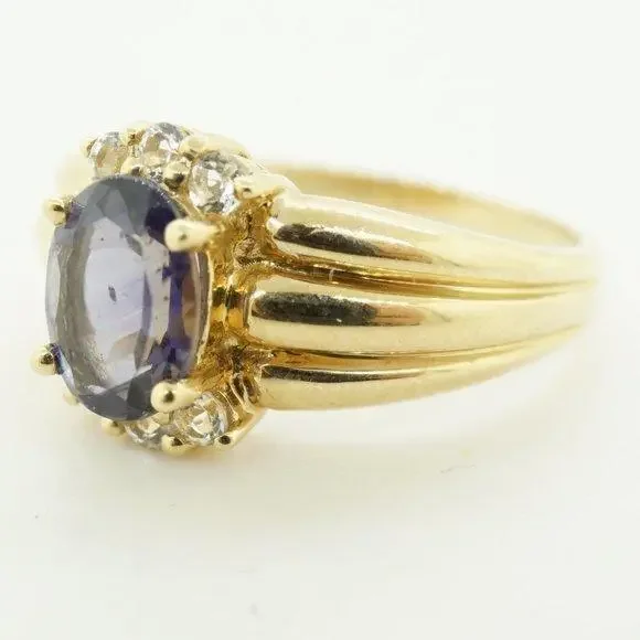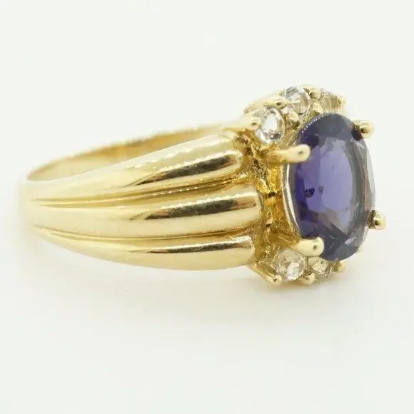 Brand:EstateMain Stone:Cubic ZirconiaMetal:Yellow GoldMetal Purity:10kRing Size:7.25Type:RingMain Stone Color:BlueMain Stone Creation:Lab-CreatedMaterial:GemstoneColor:YellowMain Stone Shape:OvalStyle:Art DecoCountry of Origin:United StatesCut Grade:GoodSecondary Stone:Cubic ZirconiaBase Metal:Yellow GoldCountry/Region of Manufacture:United StatesSizable:YesCustomized:No