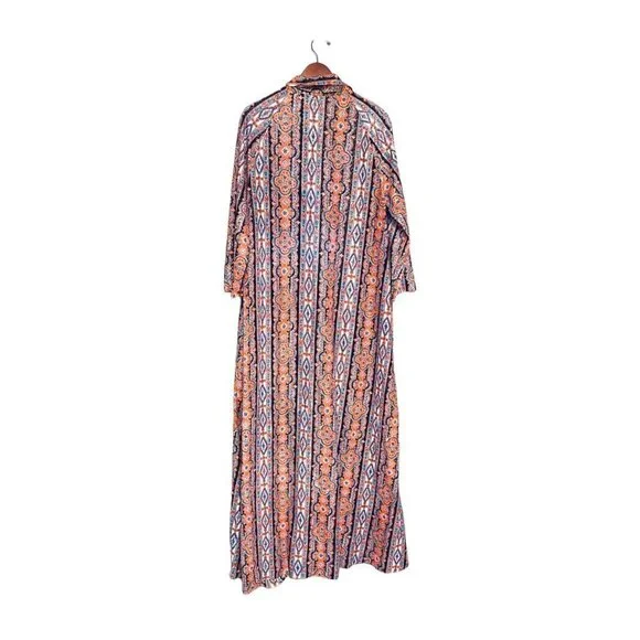 Della-Ann Womens 70s Maxi Dress Size Medium Multicolored Long Shimmering Half Zip Collared Long SleeveItem Details:Dela-Ann creations vintage house coat/robe Could double as a...