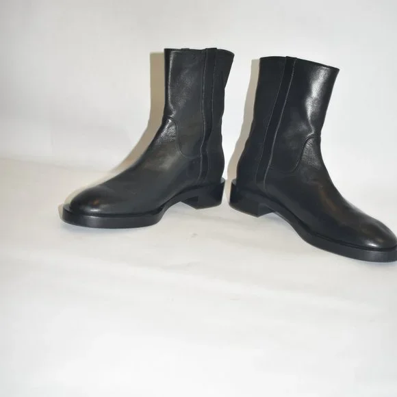 FLOOR MODEL AND TRIED ONEXCELLENT LIKE NEW- PLEASE SEE PICTURESblackleatherround toeslip-on stylelow stacked heel1 1/2" HEEL, 8" SHAFT, TOP OPENING 12"IMPORTEDLining: Leather 100%, Fabric 100%Sole: Rubber 100%Outer: Leather 100%Brand style ID: S6142SADIEDNNNO SHOE BOX OR BAG
