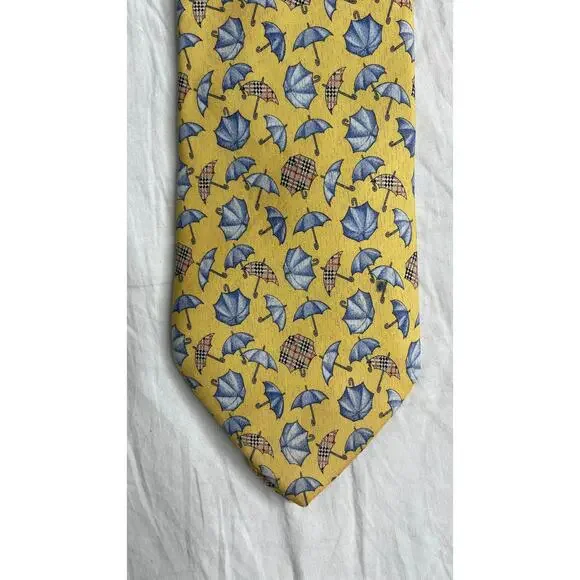 5-20 BURBERRY Men´s Tie Umbrellas Yellow/Blue 100% Silk