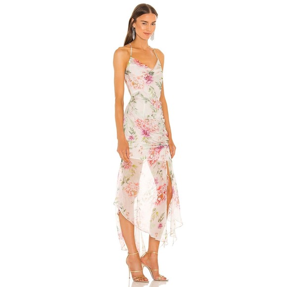 NEW SAU LEE Frieda Silk Mini Dress in Multi White Cream Pink Rose Floral 4 SmallPerfect for wedding guest, homecoming, prom, formal, cocktail party.Brand new with tags, never worn, no flaws!Self: 100% silk.Lining: 100% poly. Made in China. Hand wash. Partially lined. Hidden back zipper closure. Adjustable shoulder straps and draped neckline. Side ruched skirt with a sheer overlay. Revolve Style No. SLEE-WD61. Manufacturer Style No. RS2104.
