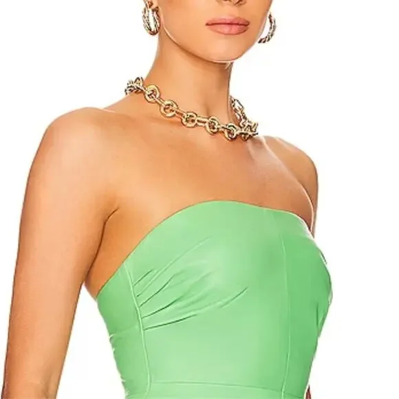 Lovers and Friends Valletta Leather Mini Dress in Green NWT Size XSBeautiful and Buttery SoftSelf: 100% lamb leatherLining: 90% polyester, 10% lycraMade in IndiaCleaned by leather specialistFully linedExposed gold-tone back zipper closureRuched sides at bustNeckline to hem measures approx 22.5" in lengthRevolve Style No. LOVF-WD3425Sold out in Size XS