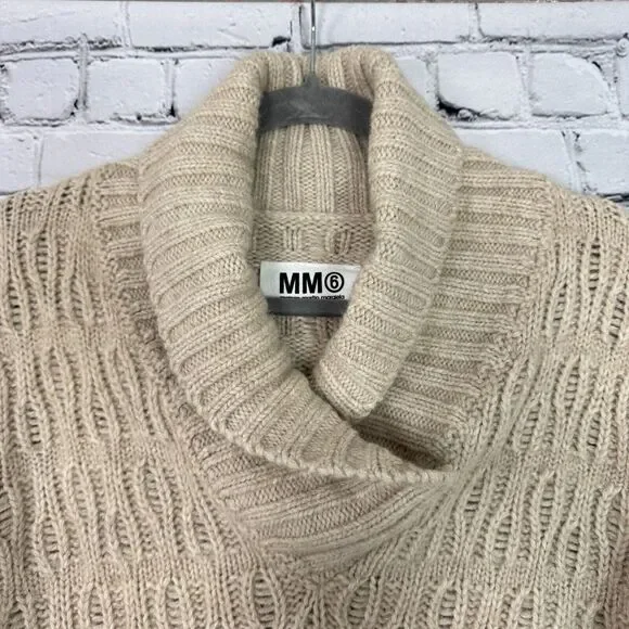 MM6 Maison Martin Margiela Cable Knit Mini Sweater Dress L Alpaca Wool Beige