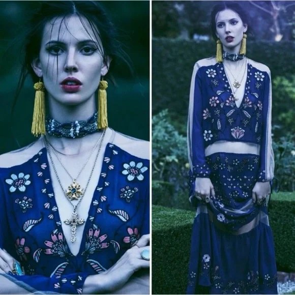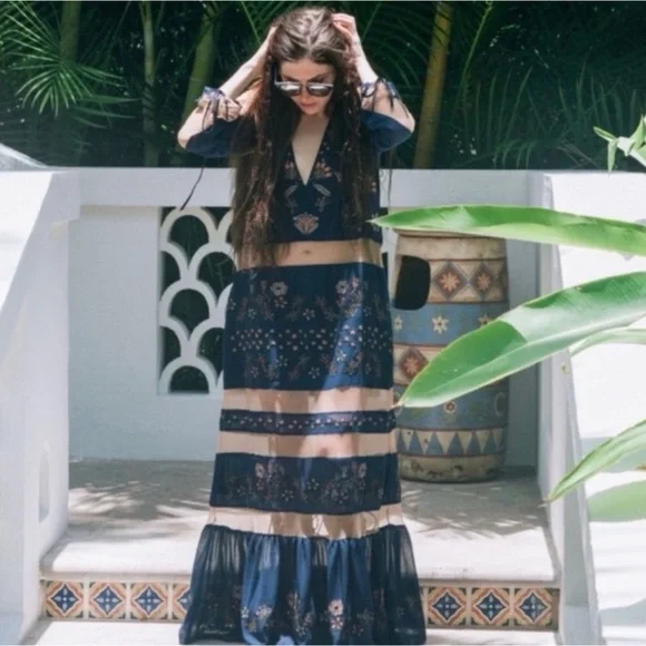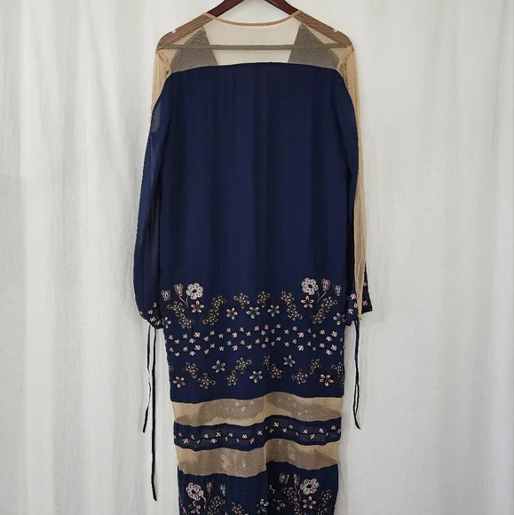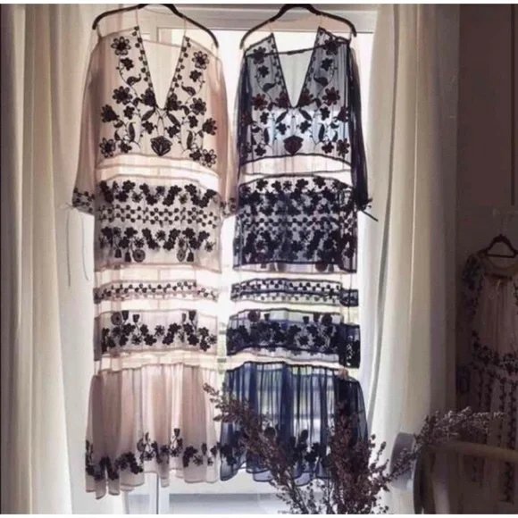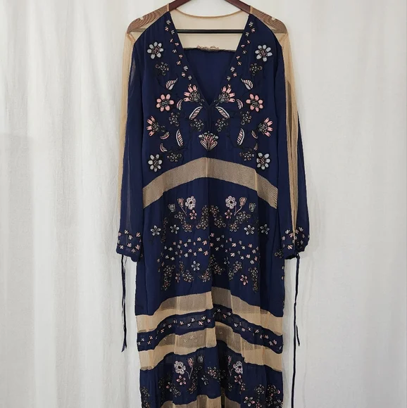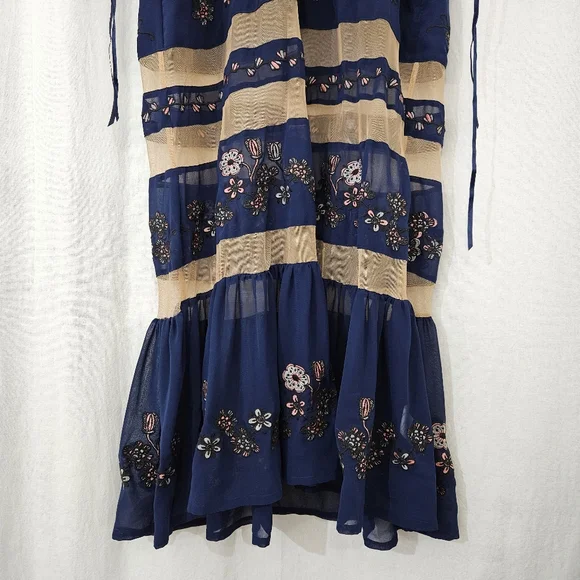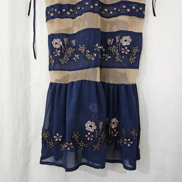 Great condition.Tags:V-neckPlunging necklineFloral embroideryNavy blueNude