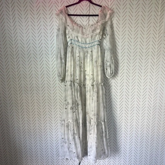 VTG RARE Gunne Sax Jessica McClintock Victorian Boho Floral Lace Boho Dress Maxi
