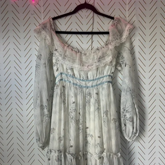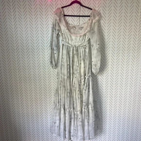 VTG RARE Gunne Sax Jessica McClintock Victorian Boho Floral Lace Boho Dress MaxiMeasurements taken while laying flat:Pit to pit:17"Length:54"**dress is even more gorgeous in person.Pictures do not due it justice.**Review pics.Dress does have some imperfections
