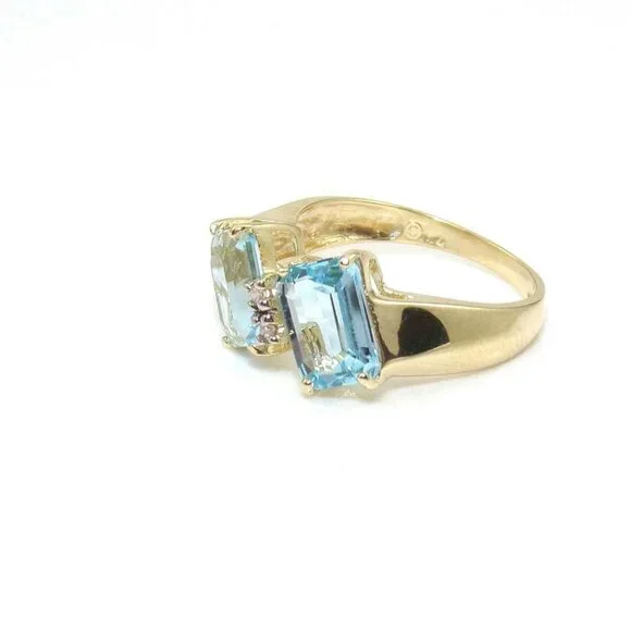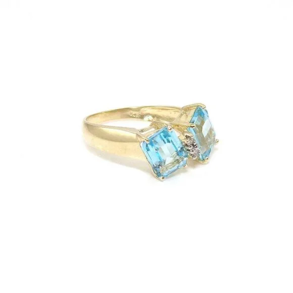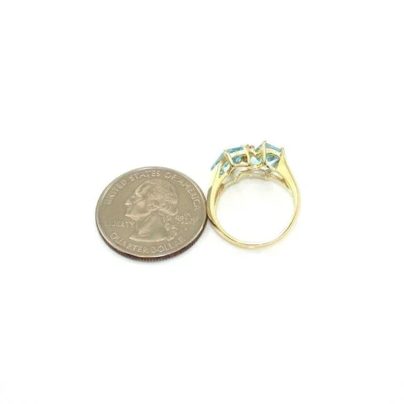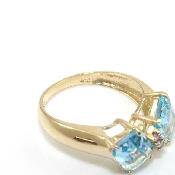 14K Yellow Gold Ring Size 6.5 Blue Topaz Diamond