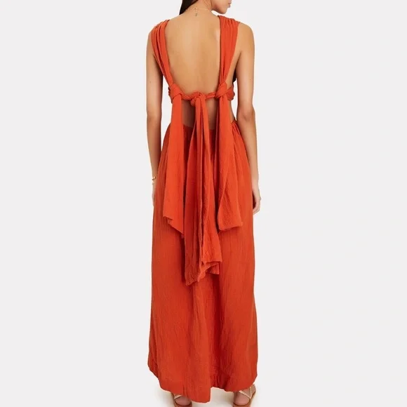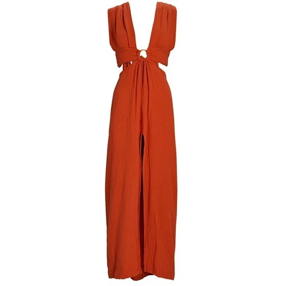 Brand new JUST BEE QUEEN Sara Cut-Out Cotton-Gauze Maxi Dress. Cut-out along a plunging bamboo ring, Sara features a floor-skimming length in a flowy light-weight fabric, detailed with a slit and a skin bearing back-tie closure. Draped in a breezy cotton-bamboo gauze. Back tie closure and elasticized waistband.Size SBishoujoPet friendlyNib orange beach flowy vacation vacay boho